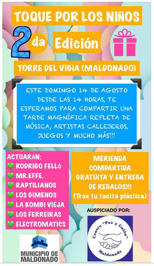 Espectáculos en vivo, música y entretenimiento. Merienda compartida gratuita y regalos para los niños.
