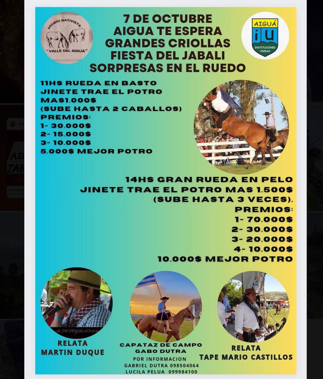 Criollas - 4 x 4 - Plaza de comidas - Espectáculos musicales - Baile Organiza: Aiguá Instituciones Unidas