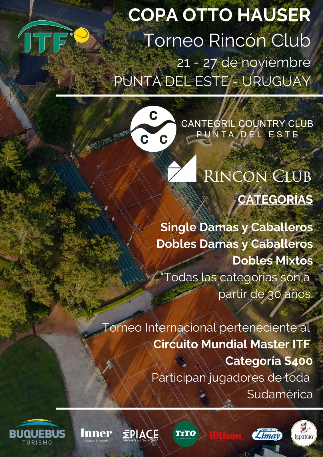 Torneo internacional perteneciente al Circuito Mundial Master ITF. Categoría S400 Participan jugadores de toda Sudamérica.