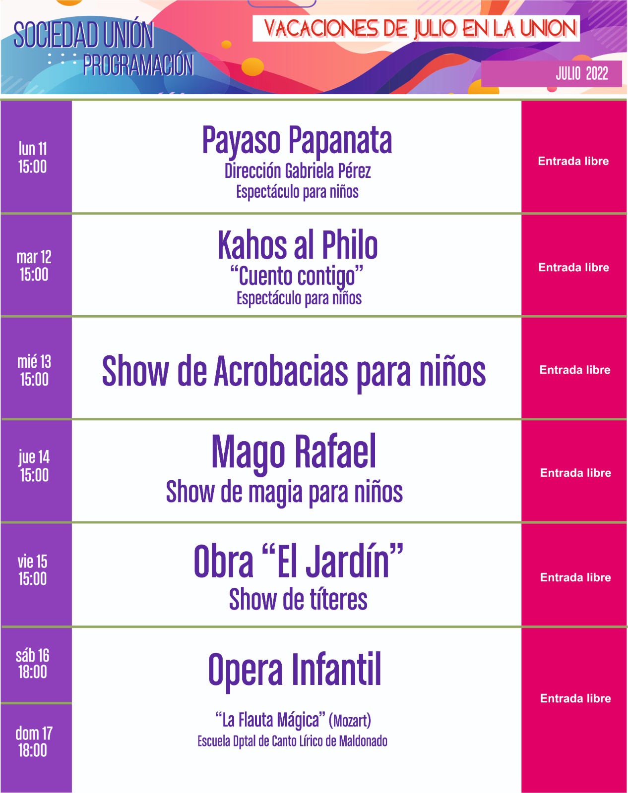 Vacaciones de Julio En El Teatro Sociedad Unión