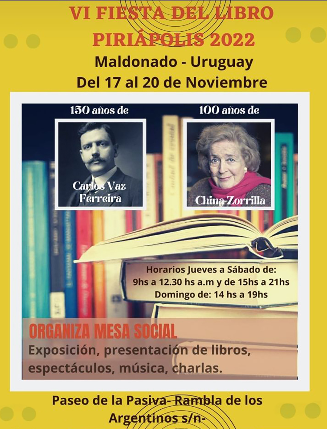 20:15 hs- Inauguración de la fiesta del Libro