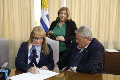 Al firmar el traspaso del mando por viaje al exterior, el intendente Enrique Antía resaltó el perfil de la directora de Asuntos Legales, que estará al frente del gobierno departamental hasta el 23 de octubre inclusive.