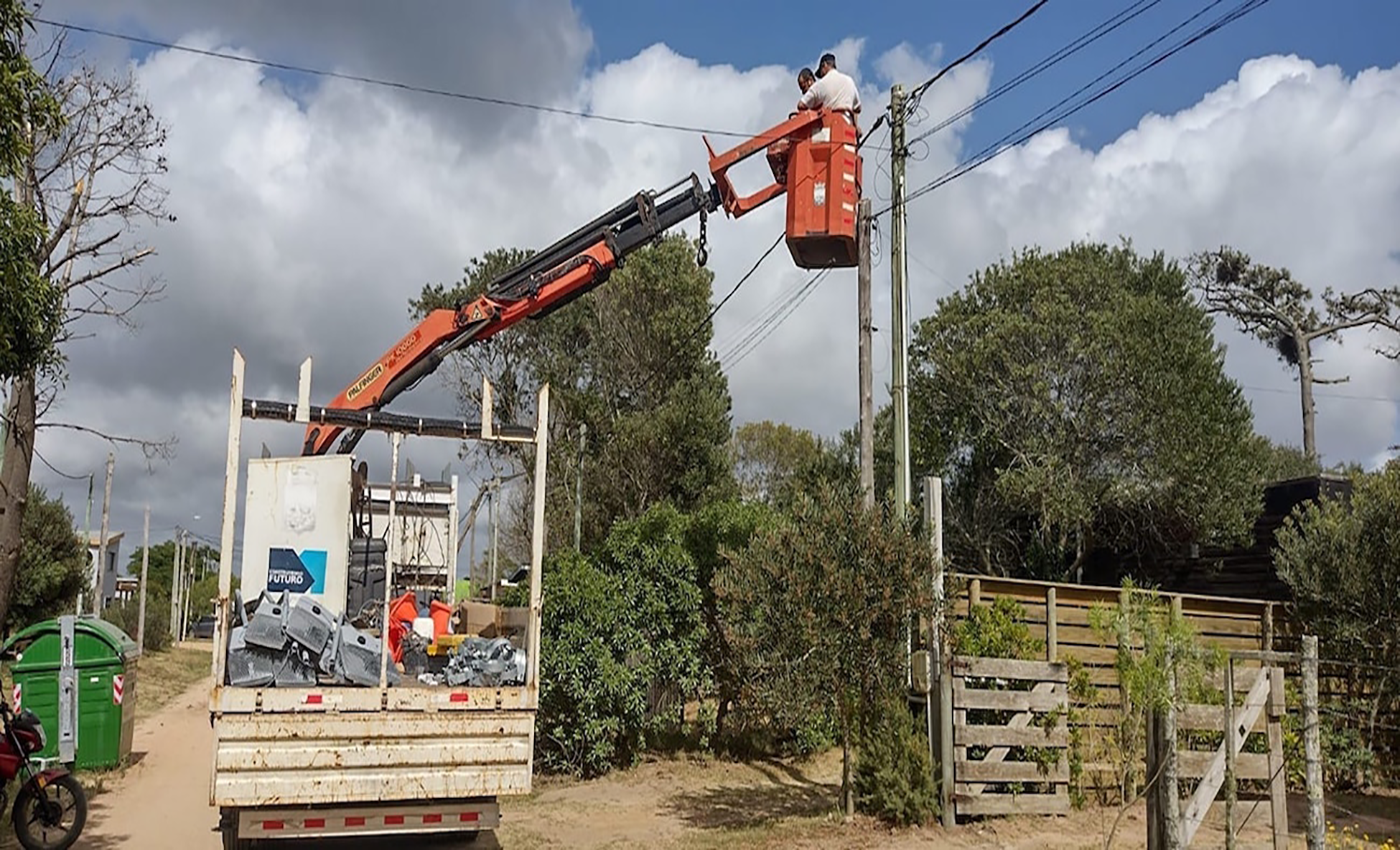 Personal del Municipio de Garzón realiza la isntalación de luminarias en el balneario próximo a José Ignacio