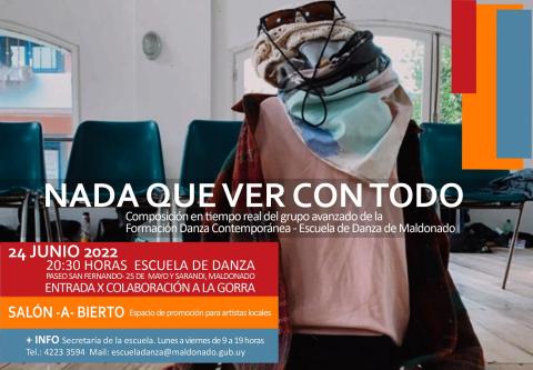 “Nada que ver con todo” se presentará bajo la dirección de Mónica Secco y bailarán Magdalena Cabrera, Guillermo Fleitas, Carolina Jaurena, Laia López, Magalí Meigome, Julieta Méndez, María Pereira, Analía Pereyra, Julieta Pérez y Lichi Sánchez.