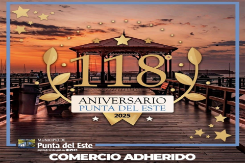 El distintivo tiene la glorieta del Puerto de Punta del Este indicando que el negocio es un comercio adherido.