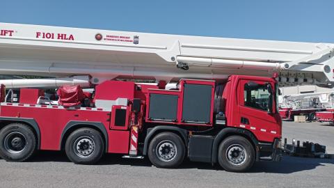Afirmó que lanza unos 3000 litros por minuto y que su brazo hidráulico alcanza una altura máxima de 101 metros, logrados con un desplazamiento lento y seguro.