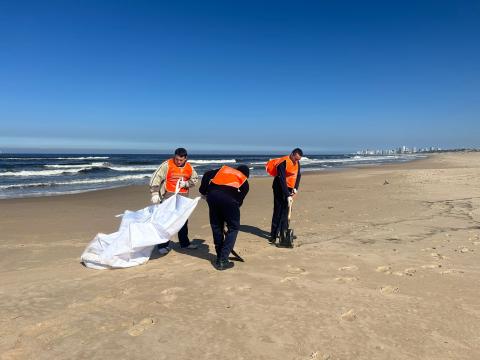 El tipo de hidrocarburo está siendo analizado también, manifestó la jerarca. En cuanto a la limpieza, sostuvo que se realiza en las zonas afectadas en forma manual, con palas y cuadrillas: "Está disperso y hay momentos en que en la limpieza se saca más arena que producto".