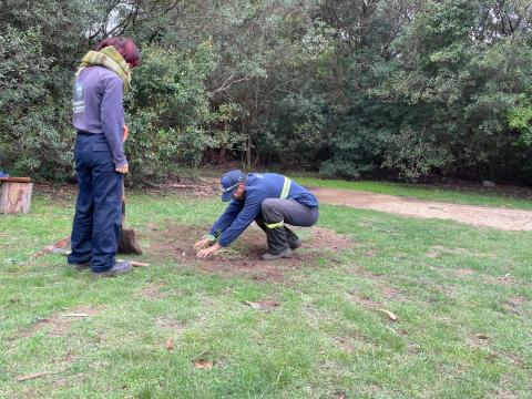 En este marco, los funcionarios del área de Espacios Verdes, realizaron la plantación de las siguientes especies: un ombú (Phytolacca dioica), una chirca (Dodonaea viscosa), un ceibo (Erythrina crista-galli) y un guayabo (Acca sellowiana).