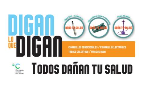 La Comisión Honoraria de Lucha Contra el Cáncer trabaja en una campaña de concientización denominada “Digan lo que digan, todos dañan tu salud". Tanto el cigarrillo tradicional como los electrónicos, los dispositivos de tabaco calentado y el uso de pipas de agua; todos dañan tu salud.