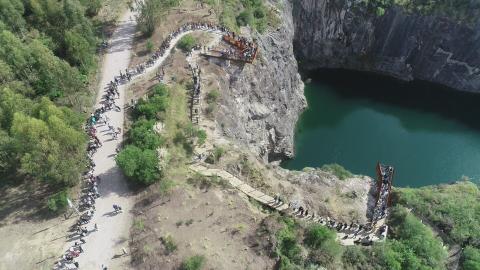 Jessica, integrante de la Comisión de Emprendedores de Nueva Carrara, señaló que “es una locura la cantidad de personas que están llegando. Venimos bajando de la sierra con un grupo y hablábamos de la importancia de revalorizar y conservar estos espacios naturales. Hay filas para ingresar al mirador”.