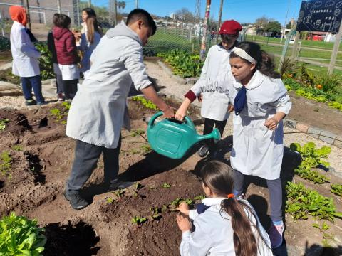 Apoya también la creación de huertas en escuelas y liceos en la capital departamental.