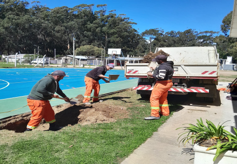El Municipio de Garzón avanza con tareas en la cancha “multiuso” preparándola para su futuro techado.
