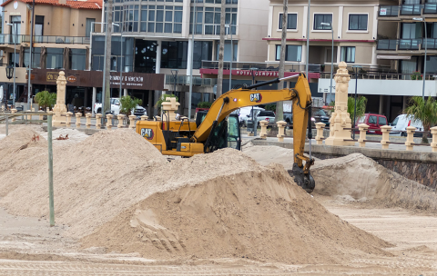 Se desplaza arena que se acumuló contra el murallón de la Rambla de los Argentinos.