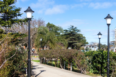 Ubicados en la entrada y el jardín se colocaron ocho nuevas modernas luminarias en el acceso del inmueble de Santos Negro González esquina Héctor Barrios.