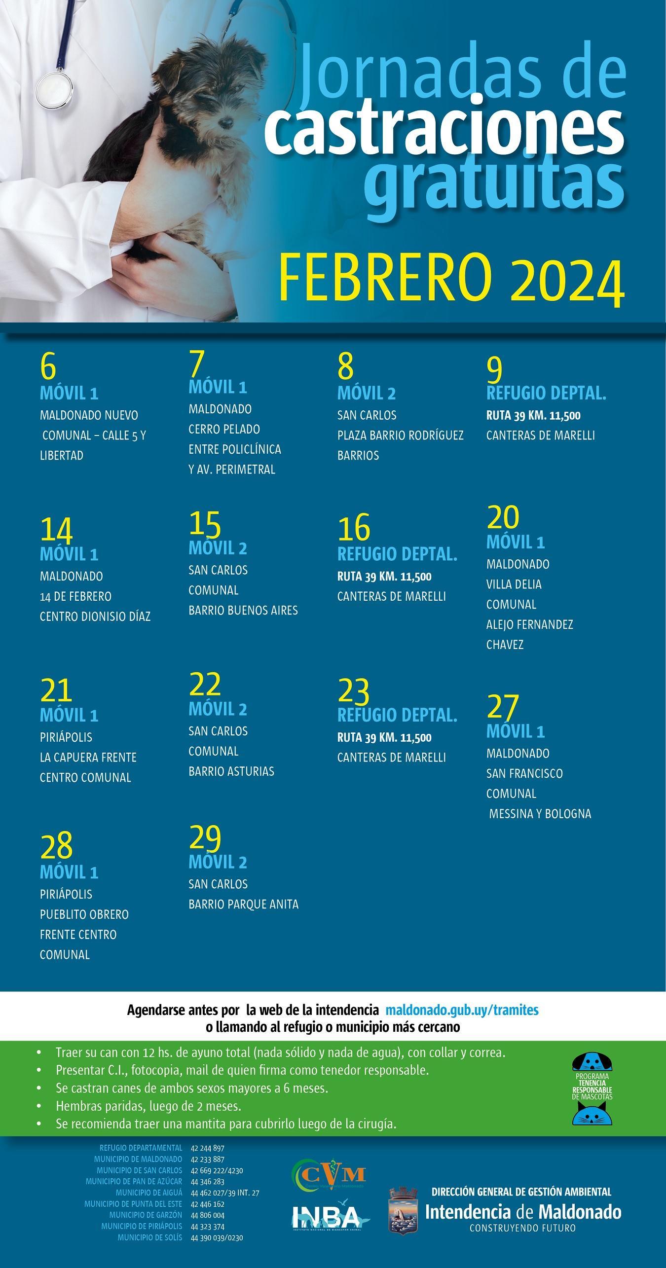 Durante esta jornada se atendió en Maldonado Nuevo, mientras que el móvil de castraciones se instalará en los próximos días en el Centro Comunal de Cerro Pelado, la Plaza del Barrio Rodríguez Barrios -de San Carlos- y en el Refugio Departamental.