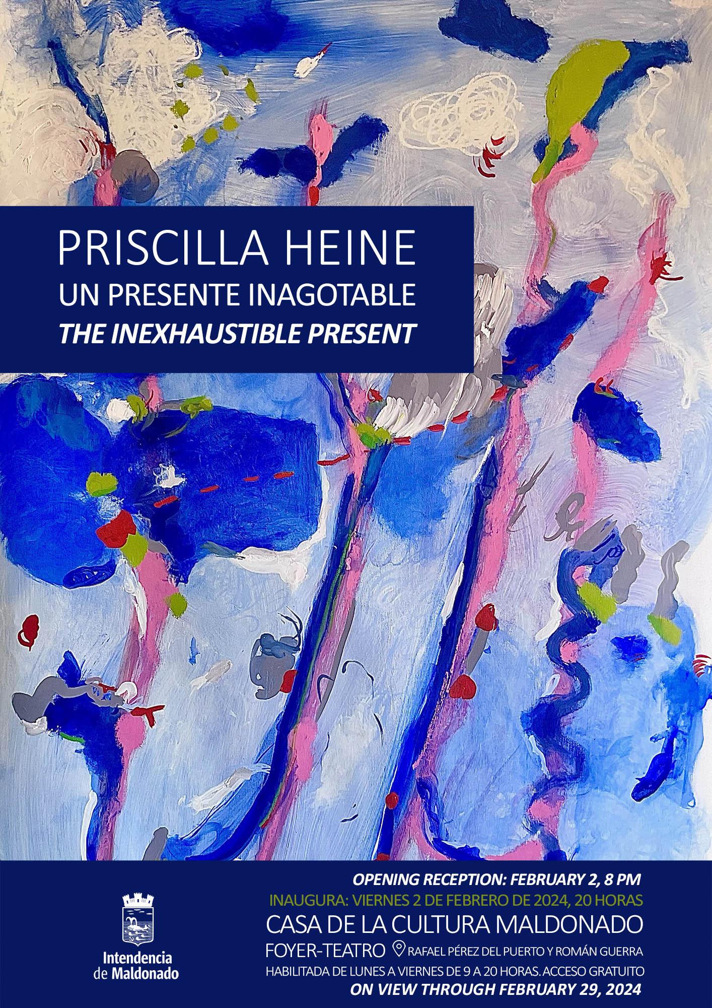Un presente inagotable de la artista plástica Priscilla Heine. Nació en Seattle (Washington, Estados Unidos), expuso individualmente y sus obras fueron reconocidas en varias galerías incluyendo Guild Hall, Islip Art Museum y East Hampton en Nueva York, y en el Centro Cultural Gorlero de Punta del Este y el Centro Cultural de la Intendencia de Maldonado en Uruguay. Entre sus técnicas se encuentran óleos sobre papel y esculturas en técnica mixta.