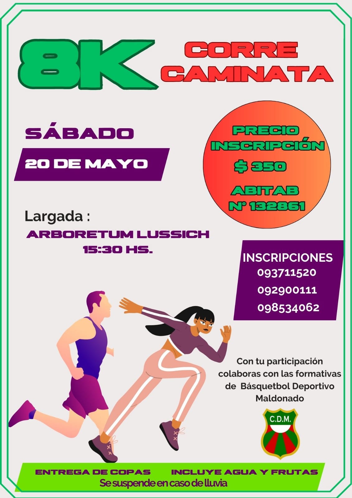 A beneficio de las selecciones formativas de básquetbol del Club Deportivo Maldonado * Inscripción $350 en Abitab * Se suspende por lluvia
