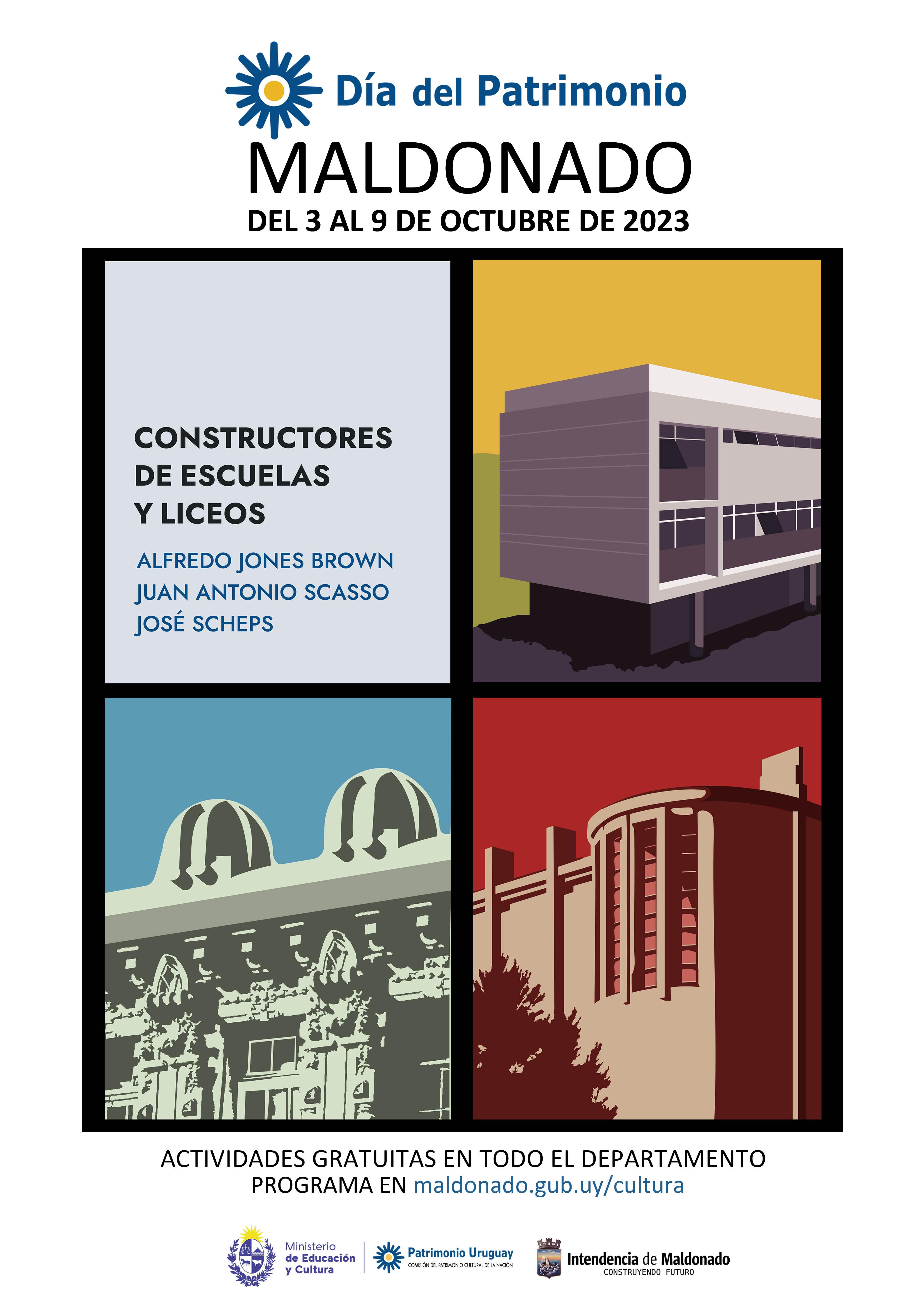 Diferentes actividades vinculadas al Patrimonio, con especial interés a la consigna de este año: “Constructores de escuelas y liceos”, en homenaje a los arquitectos Alfredo Jones Brown, Juan Scasso y José Scheps.