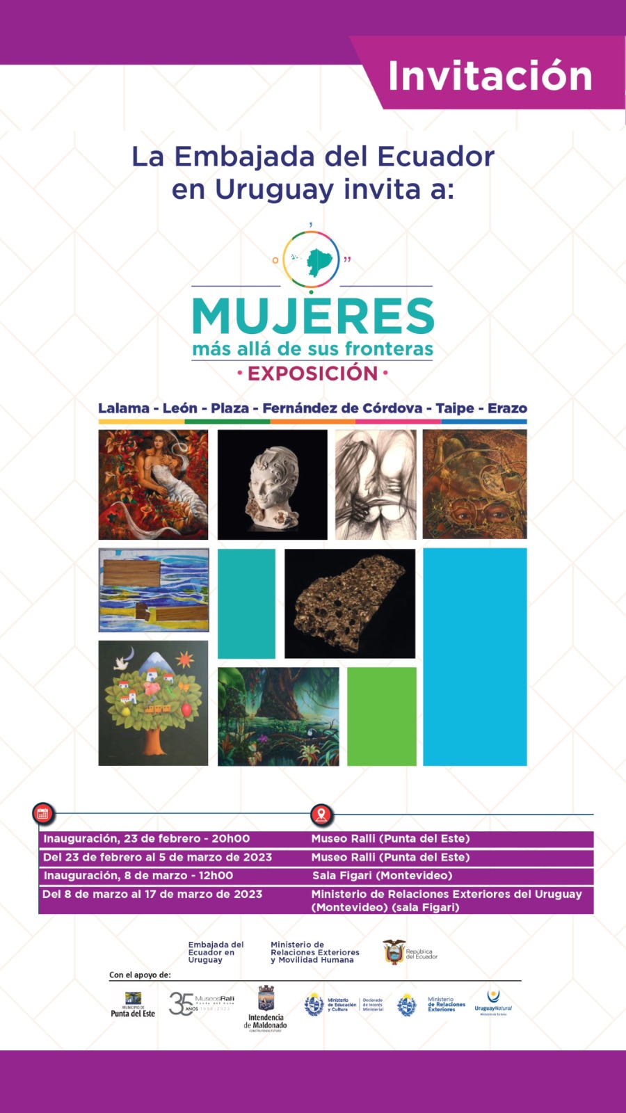 La Embajada del Ecuador en Uruguay invita a la muestra de las siguientes artistas: