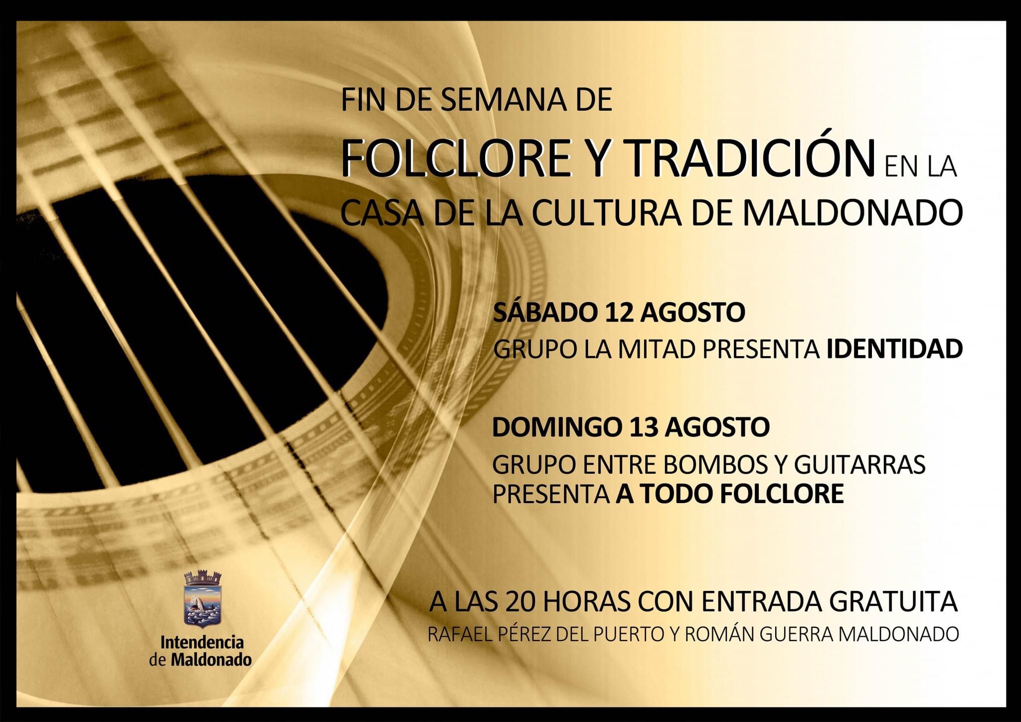 12/8 - Grupo "La Mitad" presenta "Identidad" 13/8 - Grupo "Entre Bombos y Guitarras" presenta "A todo folclore" * Entrada gratuita