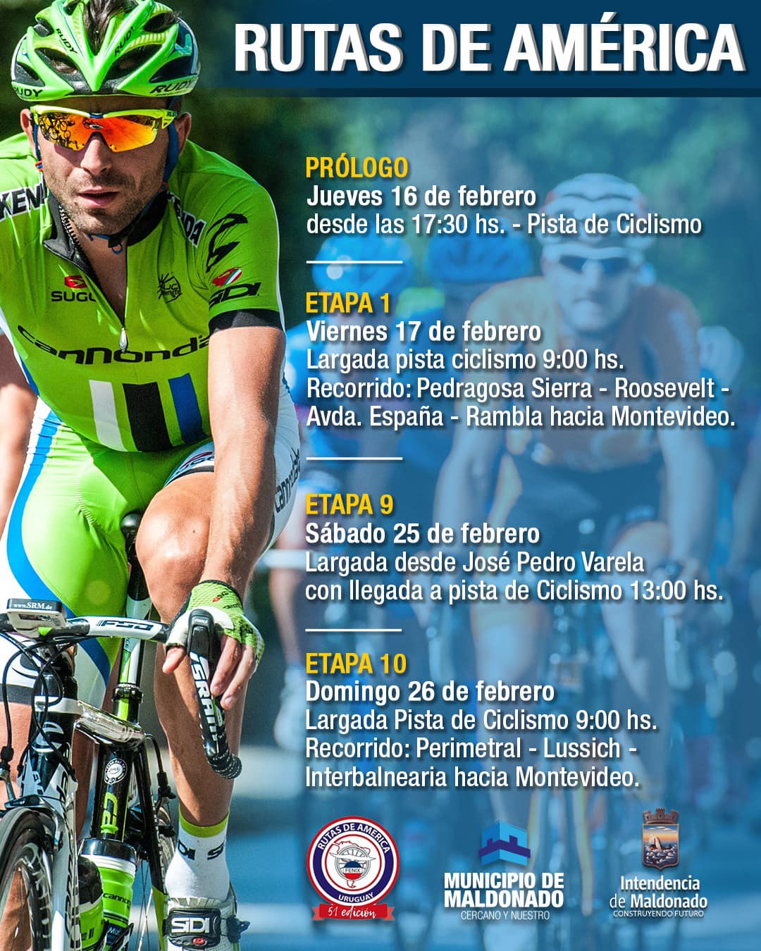 ETAPA 9: 25/2 - Largada desde José Pedro Varela, llegando a las 13 h a la pista de Ciclismo de El Jagüel.