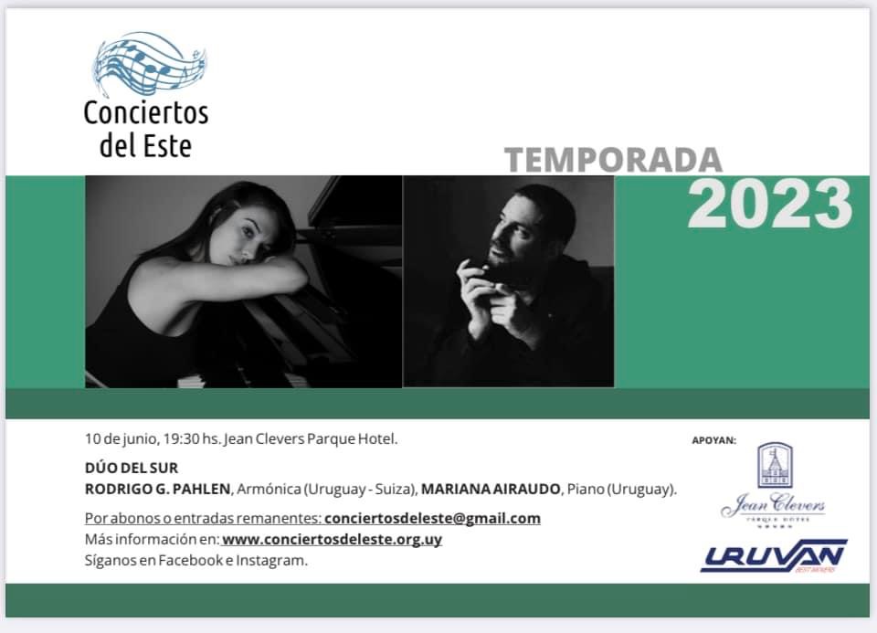 Propone disfrutar del Dúo del Sur. Más información: conciertosdeleste@gmail.com o en redes sociales FB e IG
