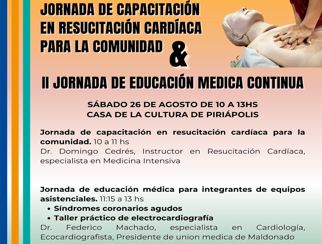 La Unión Médica de Maldonado y el Municipio de Piriápolis llevarán a cabo una Jornada de Capacitación en Resucitación Cardíaca.