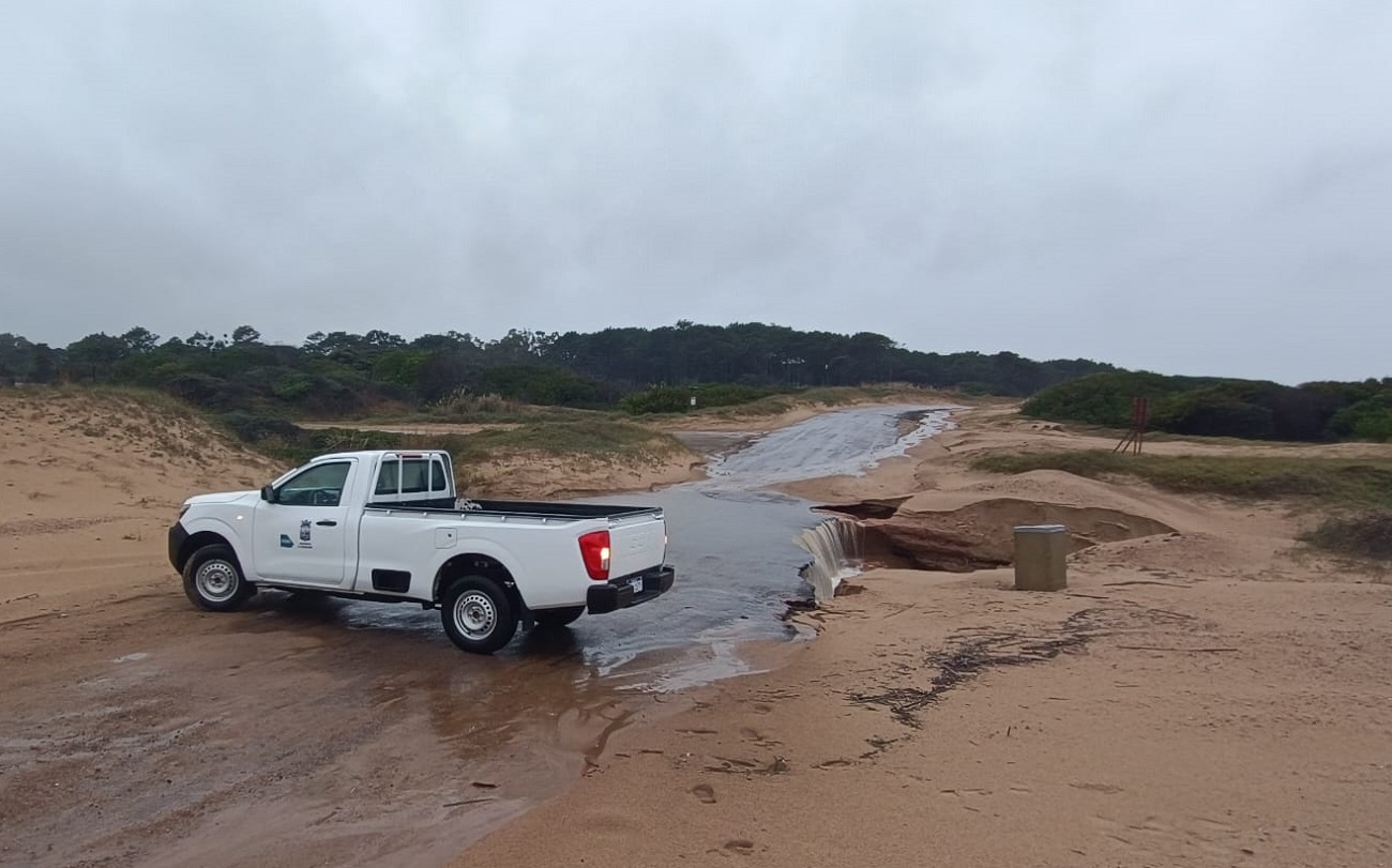 La Dirección de Tránsito y Transporte procedió a la interrupción de la circulación sobre Rambla Costanera, entre calles Naranjero y Chorlito, debido a que ya no da paso por las fuertes precipitaciones registradas en las últimas horas.