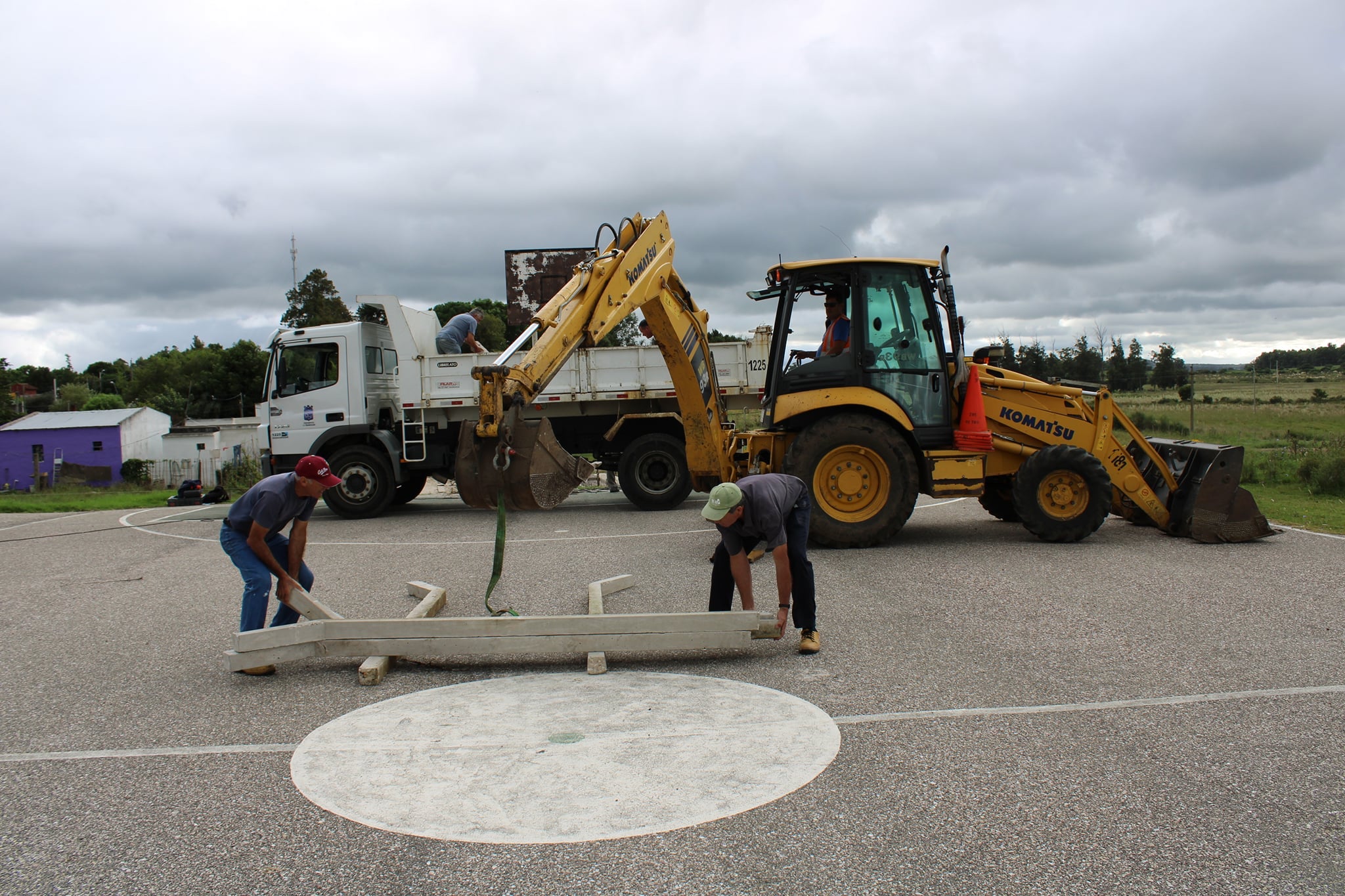 Comenzó este jueves la sustitución de los arcos multipropósito y el montaje de postes de hormigón y malla electrosoldada, en el comunal del barrio del Noreste de Pan de Azúcar.