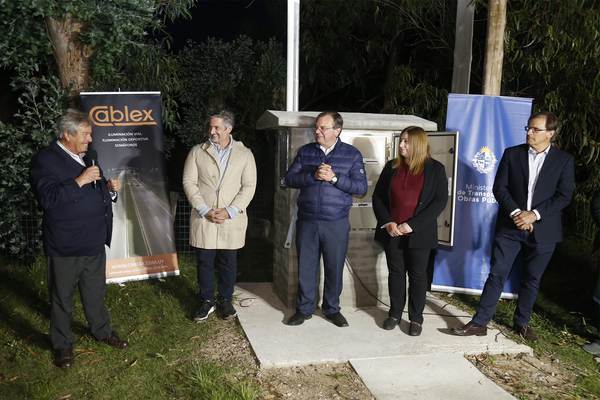 El Ministro de Transporte y Obras Públicas José Luis Falero; el Subsecretario Juan José Olaizola y el director nacional de Vialidad Hernán Ciganda inauguraron 82 luminarias led en jurisdicción del Municipio de Solís Grande.