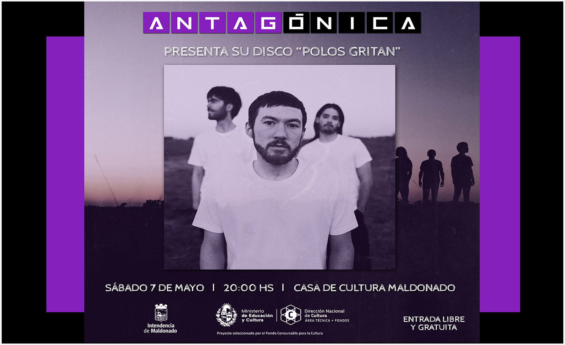 Gracias a los Fondos Concursables para la Cultura del MEC el grupo Antagónica realiza esta gira por los departamentos de Montevideo, Canelones y Maldonado.