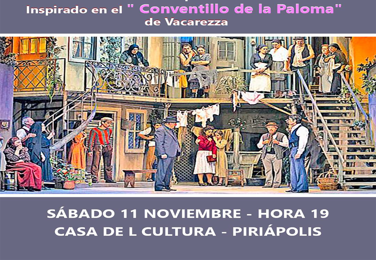 En la Casa de la Cultura del balneario este sábado 11 de noviembre a partir de las 19 horas se presentará "El conventillo de la Paloma".