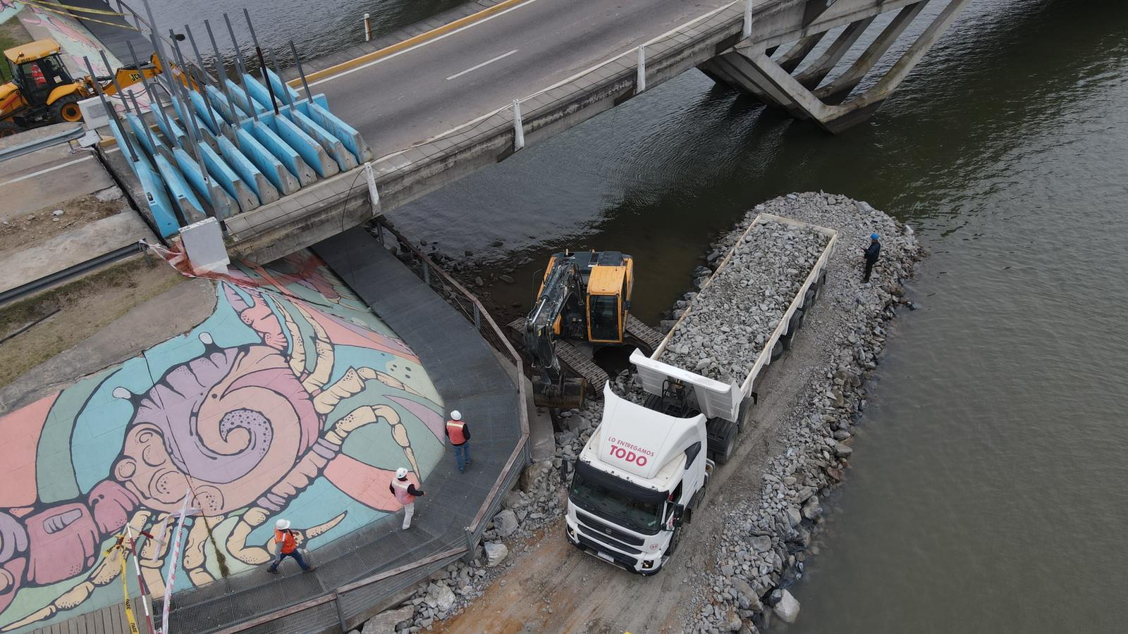 El director general de Obras de la IDM, Darío Camacho, sostuvo que se está conversando con quién pueda suministrar la piedra que se requerirá para la primera etapa. Este martes comenzaron a llegar las primeras cargas, así como el armado de las ataguías.