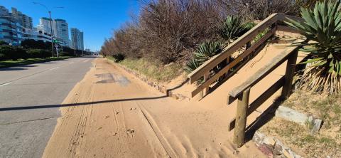Si bien no hubo intervenciones de entidad, los fuertes vientos registrados en las últimas horas provocaron la caída de algunos árboles y el desplazamiento de arena sobre la Rambla Mansa, entre las paradas 19 y 23.