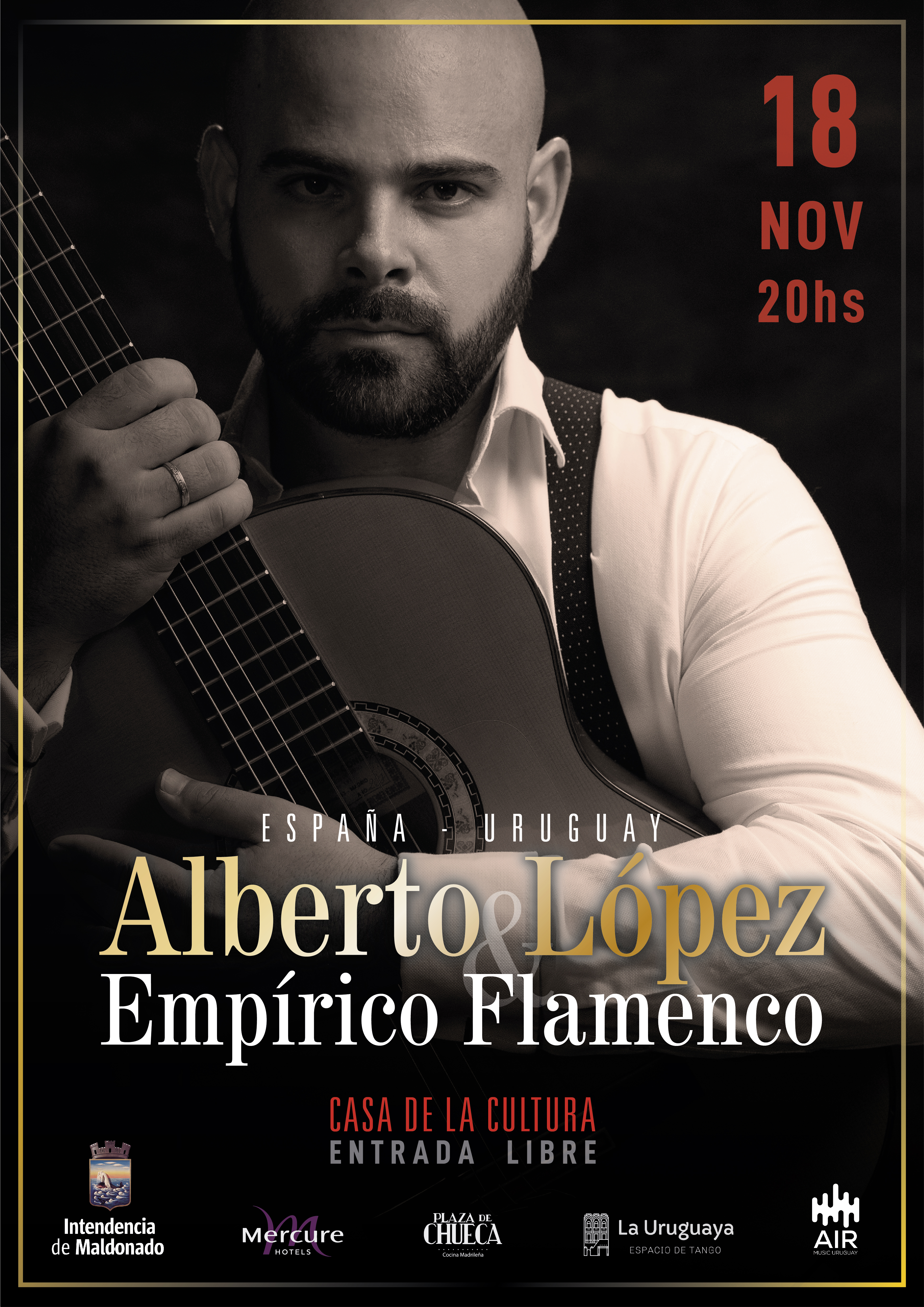 Se trata de un concierto de guitarra flamenca del guitarrista español Alberto López, galardonado con premios destacados en la especialidad, junto con Valeria Galán (baile) y Jonathan Acosta (cajón flamenco y voz).