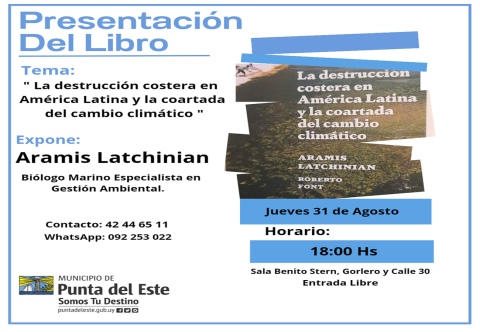 El jueves 31 de agosto a las 18 hs en la sala Benito Stern del Municipio de Punta del Este se presentará "La destrucción costera en América Latina y la coartada del cambio climático".