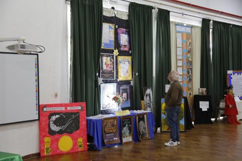 De esta forma, en el pasillo principal los escolares confeccionaron una exposición de artes visuales junto a la artista Leonor Caticha que trabajó en forma honoraria con todos los alumnos de la escuela. Se trata de un proyecto institucional de arte que se está llevando a cabo en este centro educativo en el correr del año.