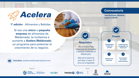 Las inscripciones abiertas hasta el 20 de setiembre y por consultas pueden comunicarse a través del correo electrónico aceleramaldonado@gmail.com