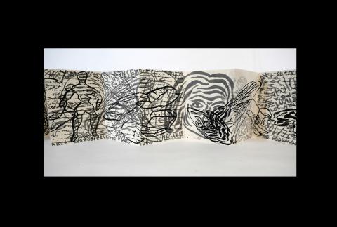 Consiste en una serie de piezas desplegables -papel milenario, técnica originada en China- en las que se concentran imágenes que el artista ha plasmado en diversas superficies y diferentes materiales a lo largo de su trayectoria.