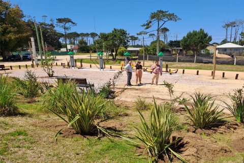 El Alcalde Nazareno Lazo y la paisajista de la intendencia Viviana Lichner supervisaron los trabajos en el entorno de la estación saludable del balneario.