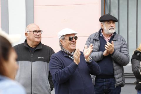 El jefe comunal Enrique Antía esperó la llegada del tradicional desfile en la Plaza San Fernando durante la mañana del domingo 13 de octubre.