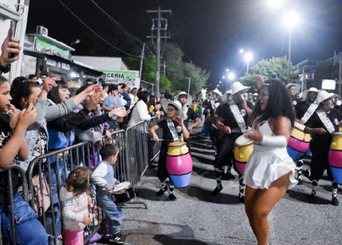 El corso realizado en ese barrio de la capital departamental contó con importante presencia de vecinos y público en general durante la noche del domingo 11; esa instancia del Carnaval reunió a varias comparsas y escuelas de Samba del departamento.