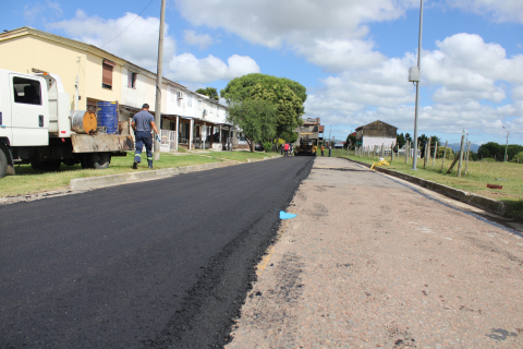 Personal y maquinaria del Equipo Vial de Zona Oeste y el Municipio de Pan de Azúcar llevan a cabo carpeta asfáltica en los dos barrios al Noroeste de la ciudad.