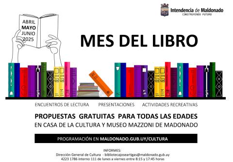 Si bien mayo es el mes que destaca a la literatura entre todas las artes, la Dirección General de Cultura de la IDM ha coordinado actividades que comenzaron en abril y finalizarán en junio en la biblioteca José Artigas y la Sala de la ex Junta de la Casa de la Cultura de Maldonado -ubicada en calles Rafael Pérez del Puerto y Sarandí-, y en el Museo Mazzoni que está situado sobre calle Ituzaingó 789 de la capital departamental.