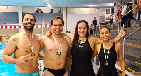En la prueba de relevos se obtuvo el oro en la prueba 4x50 estilo mixto, categoría hasta 120 años (suma total de la edad de los nadadores):