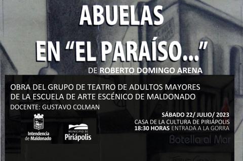 El elenco está conformado por un grupo de adultos mayores de la Escuela de Arte Escénico de la IDM que está a cargo del profesor Gustavo Colman. La nueva función se hará a las 18.30 horas de este sábado 22 de julio en la Casa de la Cultura de Piriápolis.