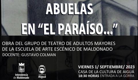 El elenco está conformado por un grupo de adultos mayores de la Escuela de Arte Escénico de la IDM y a cargo del profesor Gustavo Colman. La nueva función se hará a las 18.30 horas de este viernes 1° de setiembre en la Casa de la Cultura de Aiguá.