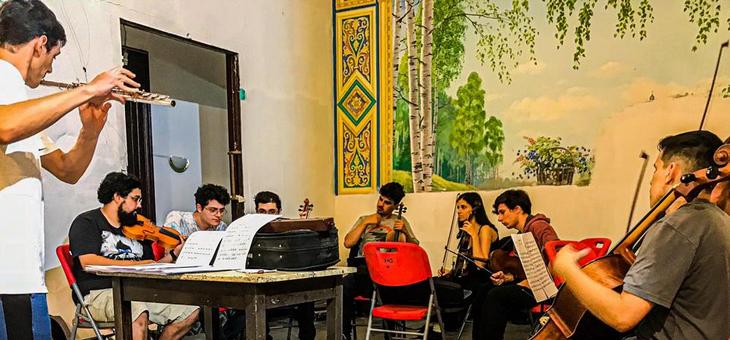 El conjunto se compone por: el violinista Martín Da Rosa (director y concertino); Rodrigo Ramos (asistente de dirección, violinista y violista); y Gastón Sienra (copista y violinista). Músicos formados en la Escuela Universitaria de Música, Grupos Sonantes, Escuela de Música Vicente Ascone y el maestro Jorge Risi completan la agrupación.