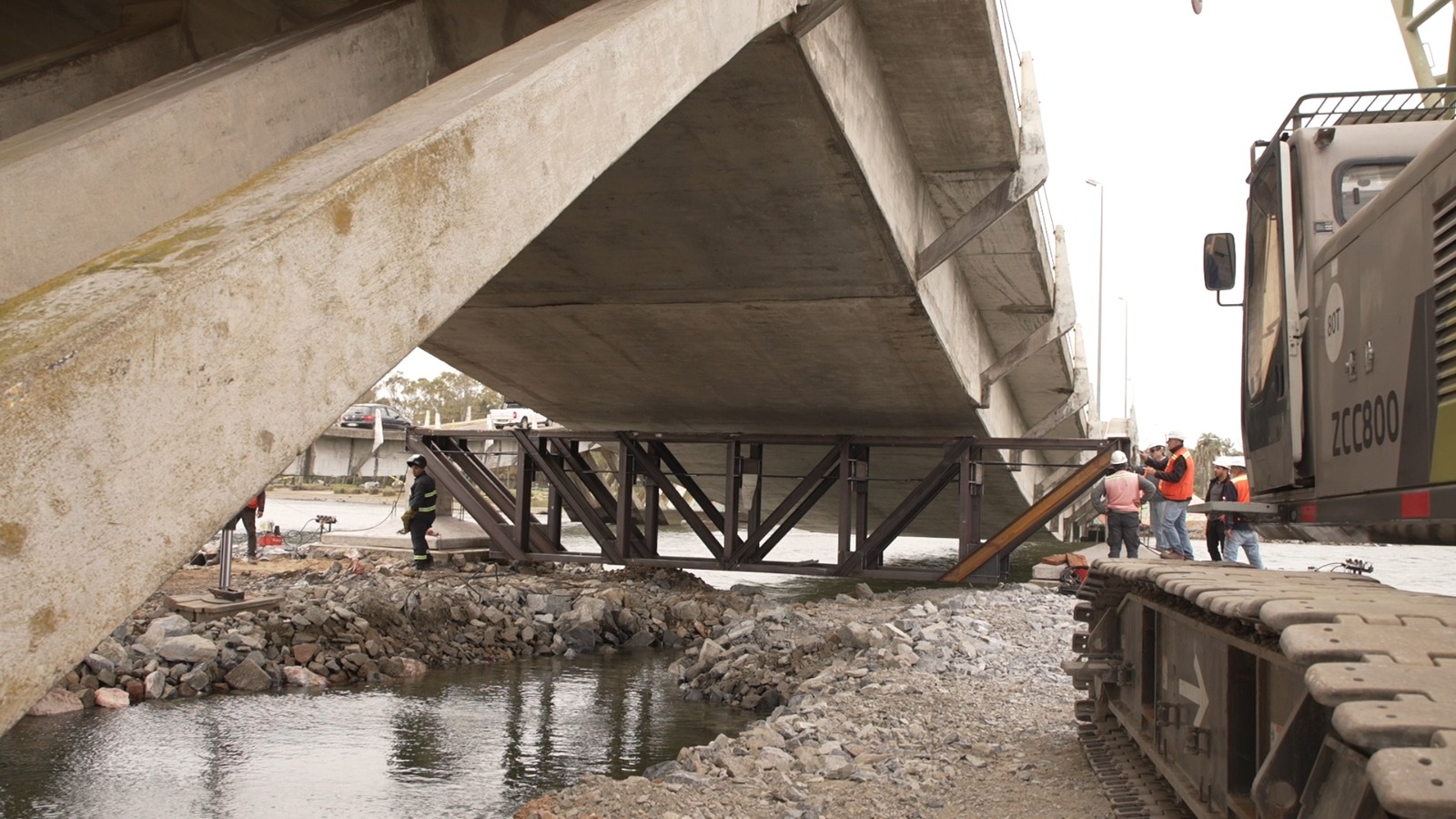 Saceem, la empresa contratada por la IDM, sigue adelante con los trabajos y se espera que a la brevedad lleguen las vigas restantes para apuntalar el puente.
