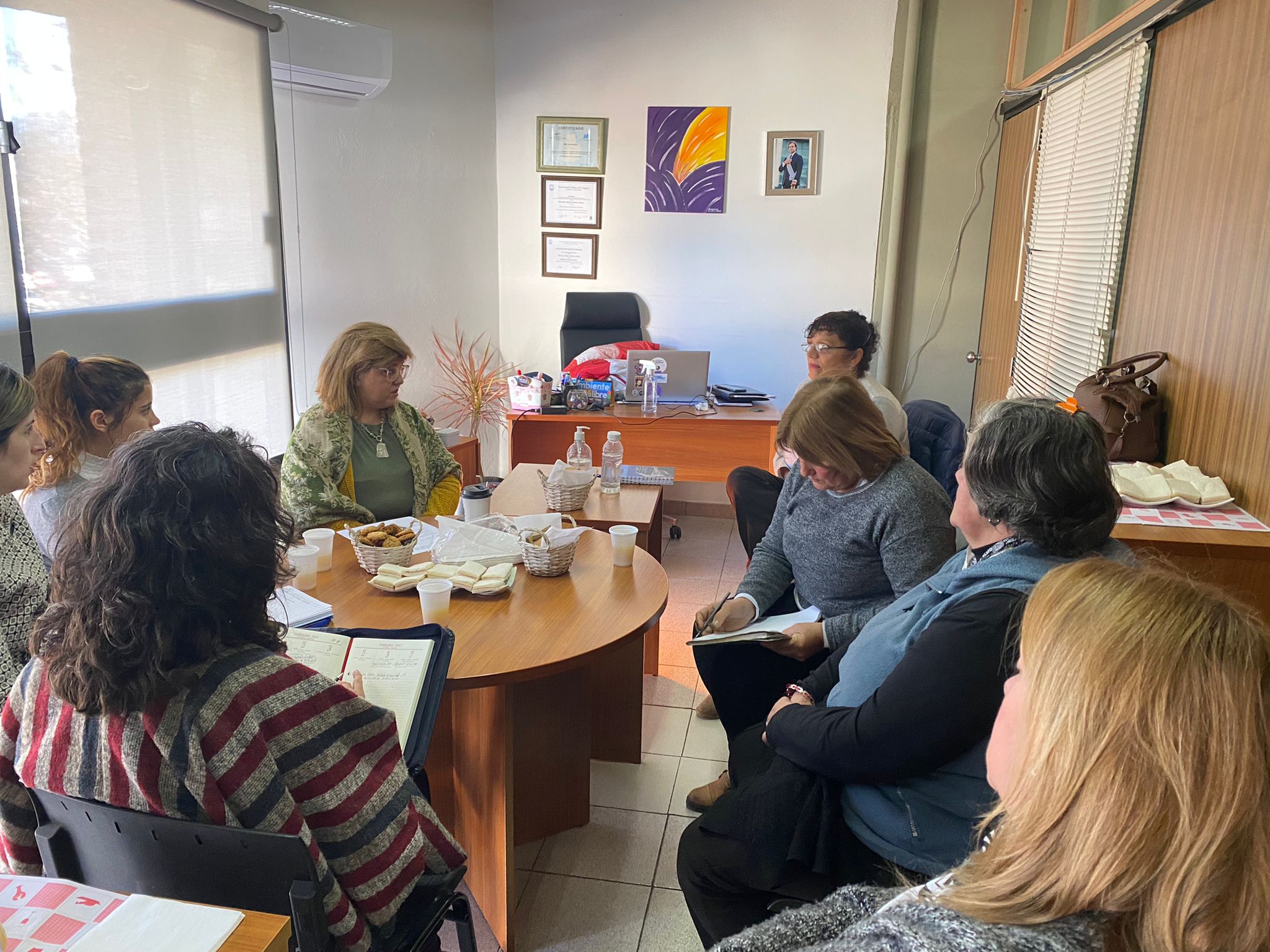 El encuentro fue propicio para tratar diversos temas, entre ellos informar sobre los talleres de convivencia en escuelas rurales del departamento, así como en los liceos bajo la consigna "Esto no es amor", entre otros trabajos en conjunto que lleva adelante la Dirección de Género de la IDM.